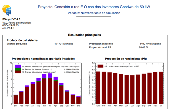 •  Producción anual media de 1490kWh/kWp/año y performance ratio de 88,48%.
