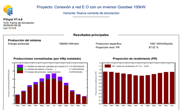 •  Producción anual media de 1462kWh/kWp/año y performance ratio de 87,02% de la solución E-O.